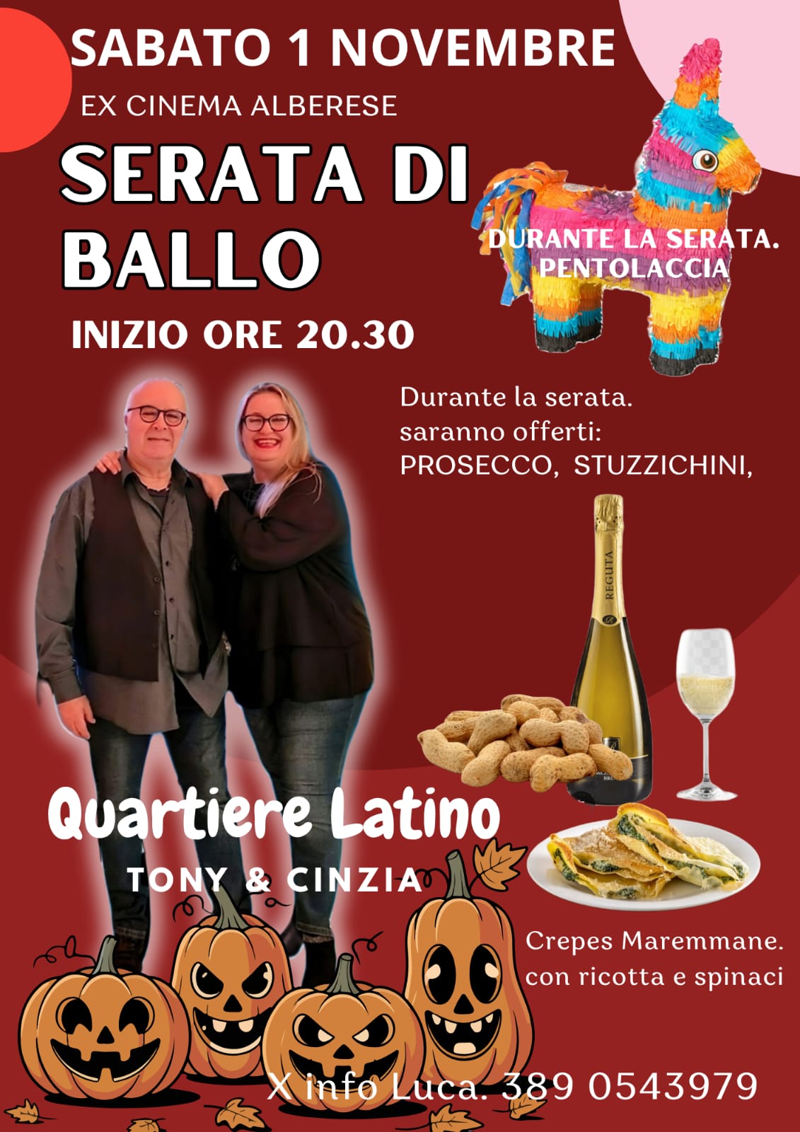 1° novembre ore 20:30 presso l'ex cinema di Alberese. Serata di ballo