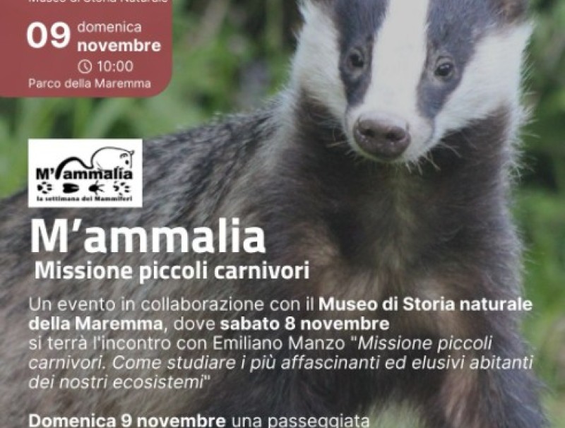 Un evento in collaborazione con il Museo di Storia naturale della Maremma, dove sabato 8 novembre - ore 17 si terrà l’incontro con Emiliano Manzo ”Missione piccoli carnivori” Come studiare i più affascinanti ed elusivi abitanti